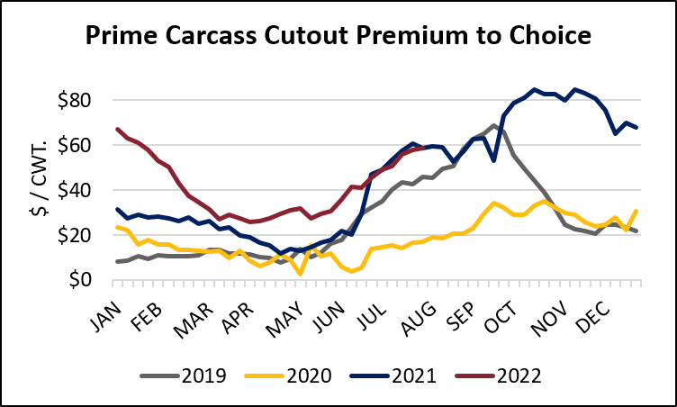|  Through much of the spring season, the lower quality Select carcass share held steady with the 2021 pattern with a near record-low volume in the 12 to 15% range. However, as the