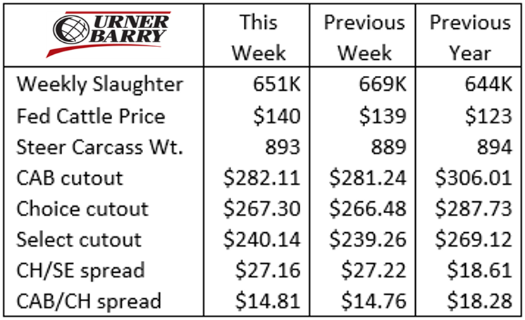 summer fed cattle supply has been ultra-current, particularly in the north, sub-optimal ribeye marbling measurements allowed the Select category to drift higher than 16%. This is larger than summer values in the past two years.